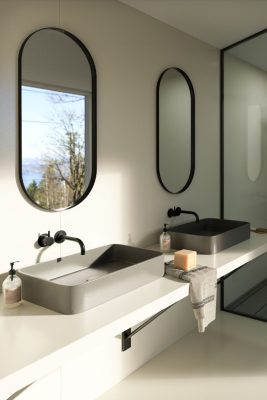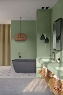 Phòng tắm là nơi thư giãn nên rất cần sự sự thoải mái. Các vật liệu xây dựng trong phòng tắm như tường, bồn tắm, sàn… đều phải chống trơn trượt, dễ dàng vệ sinh và kèm theo sự sang trọng giúp thư giãn được tốt hơn. Vì vậy, việc sử dụng các loại đá cao cấp là điều vô cùng cần thiết để tôn vinh lên vẻ đẹp thời thượng của căn phòng. Nếu đi liền với chậu rửa đá nhân tạo ngay trong phòng tắm sẽ tạo lên một không gian thanh lịch, liền mạch và độc đáo hơn.